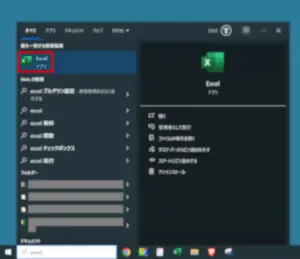 デスクトップの左下にある「ここに入力して検索」というところをクリックしてから、キーボードで「excel」と入力すると、検索結果が出てきます。