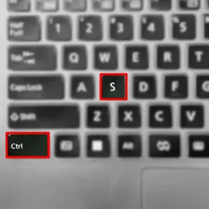 「Ctrl」キーを押しながら、「S」キーを押します。「Ctrl」キーを押してからではなく、押しながらです。