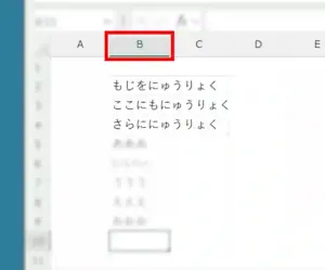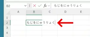 この状態で、キーボードで文字を入力してみてください。すると、セルの中に文字が書き込まれると思います。