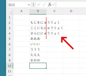 長い文字を入力すると、セルをはみ出してしまうことはよくあります。