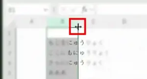 すると、マウスカーソルの形が、縦線に左右の矢印が重なったマークに変更されると思います。この位置からマウスカーソルを動かさずに、ダブルクリックしてください。