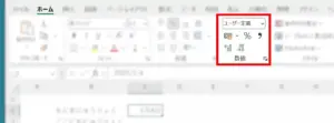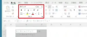 この状態で、メニューの中から「ホーム」をクリックし、「フォント」というところを探してください(「数値」よりも左にあることが多いです)。