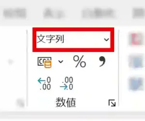 この状態で、「ホーム」の「数値」で「標準」を「文字列」に変更するという一連の操作を行えば、選択された複数のセルを同時に修正することが可能です。