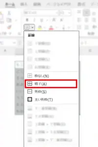 出てくるメニューの中から、中ほどにある「格子」をクリックします。