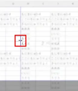 この状態で、マウスカーソルを「今クリックしたアルファベット」と、「その1つ右のアルファベット」のちょうど中央まで移動してきてください。