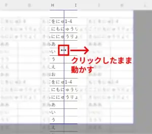 動かしたい線の真上にマウスカーソルを移動すると、マウスカーソルの形が左右矢印に変わると思います。