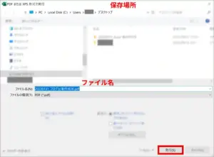 「ファイル名」と書かれた右の入力欄の中身を書き換えて、ファイル名を付けます。