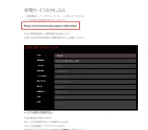 「MSI RMA 日本」で検索すると、修理サポートが必要なときはというページが見つかりました。