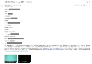 メールボックスを確認すると、このように自動返信メールが届いていました。内容は自分が入力したフォームの中身です。