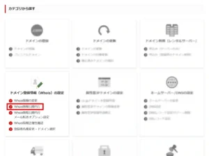 カテゴリから探すの中にドメイン登録情報(Whois)の設定というカードがあります。その中のWhois情報公開代行をクリックします。