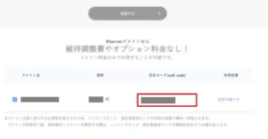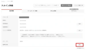ドメイン詳細の画面になるので、AuthCodeのところにある表示ボタンをクリックします。