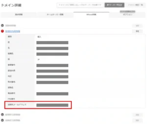 移管の手続きで使われるのは登録者情報の連絡先メールアドレスかと思いますが、念のためすべて確認しておくとよいでしょう。