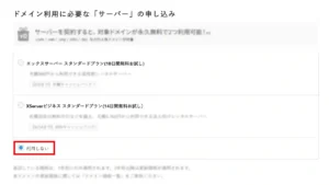 下にスクロールしてサーバーに関する項目を選択します。サーバーの契約が必要ない場合は「利用しない」をクリックします。