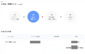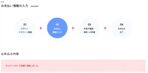 ログインに成功したらお支払い情報の入力画面になるので、申し込み内容を確認します。