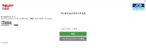 クレジットカードの場合は3Dセキュアの画面が出てくると思います(画像は楽天ビジネスデビットの場合)。