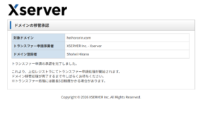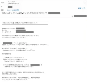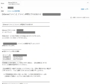 翌日くらいにお名前ドットコム、Xserverドメインそれぞれから完了のお知らせがメールで届きました。