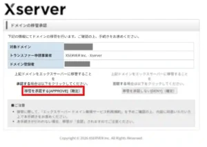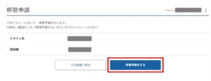 この場合は管理画面から再度移管申請を行う必要があります。最申請はXserverドメインの管理画面から行えます。