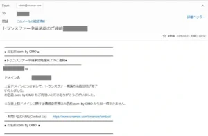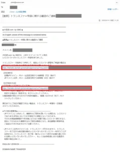 後は、「【重要】xxxxxxのトランスファー申請に関するご案内」という件名のメールが再度送られてくるのを待ちます。