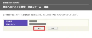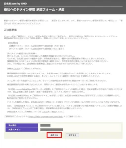 リンク先のページを開くとドメインの情報が表示されるので、問題なければ「移管を承認する」をクリックします。